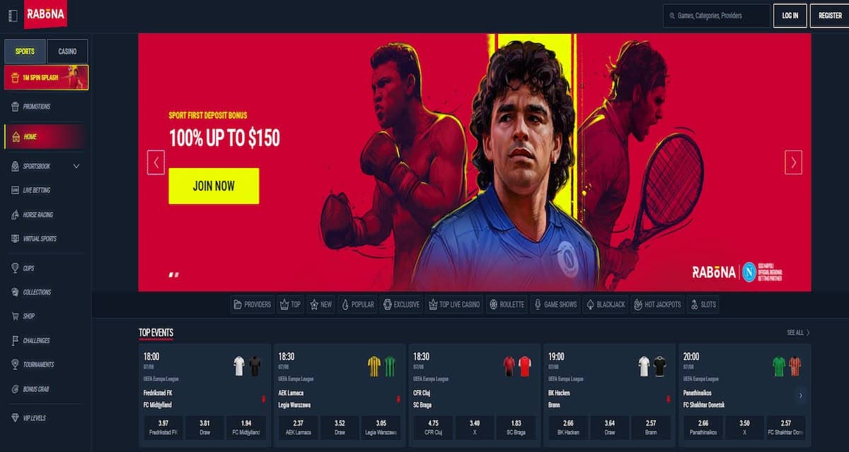 Its promotion suite includes a 100% deposit match up to CAD 300 and weekly free-bet giveaways for active bettors. Rabona also runs a loyalty program where points accrued on sportsbook wagers can be redeemed for bonus credits. The casino section is well-developed, featuring live dealer games from Evolution Gaming and over 1,500 slots. In-play betting offers real-time stats, a sleek match tracker, and on-demand streaming for select events.